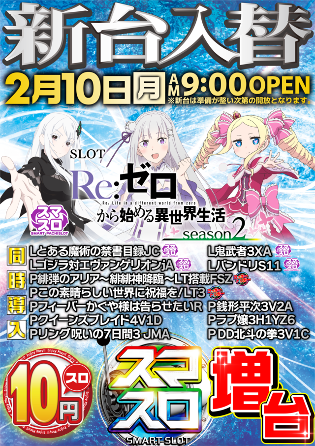 | 2025/02/10 | リニューアル等 | 10円スロットスマスロ増台 |
