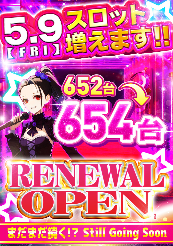 | 2025/05/09 | リニューアル等 | スロット増台(652台→654台) |
